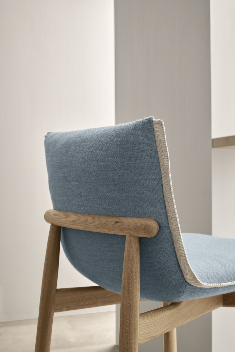 Available with a solid oak or walnut frame in a variety of finishes, and with leather or fabric upholstery. The upholstery and edging strip is available in various combinations.