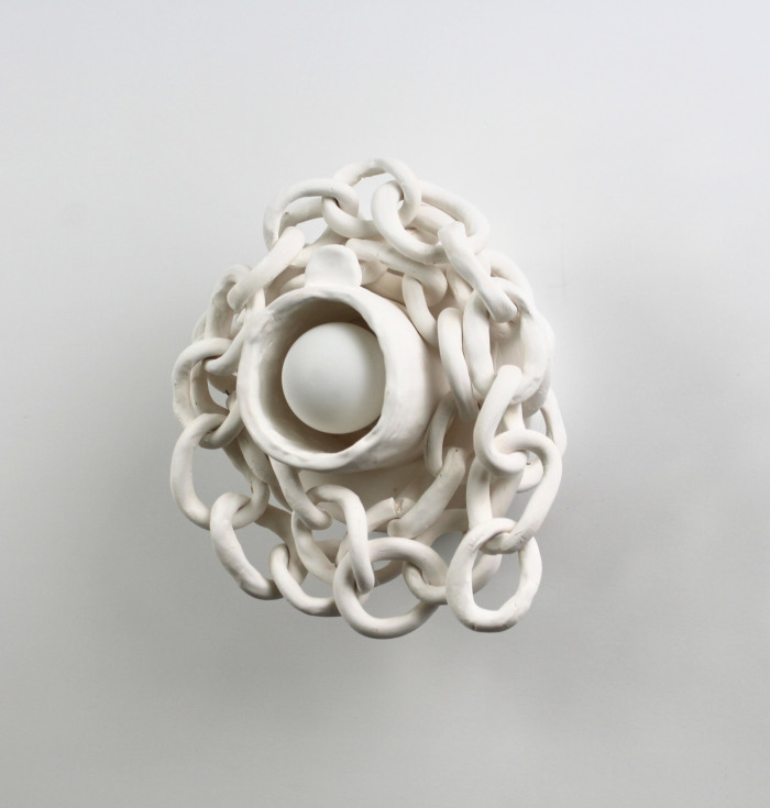 “Ceramics have been a place of surrender and peace, being mostly self-taught has allowed me to spend endless hours in discovery- not only in discovery of the ceramic materials but pushing the limits of lighting and balance and the assembly needed to combine both ceramics and light”.