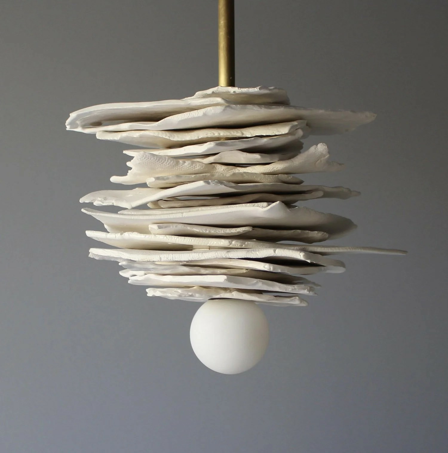 “Ceramics have been a place of surrender and peace, being mostly self-taught has allowed me to spend endless hours in discovery- not only in discovery of the ceramic materials but pushing the limits of lighting and balance and the assembly needed to combine both ceramics and light”.