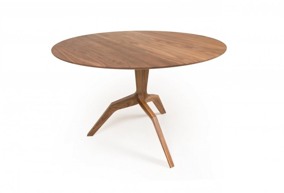 Designed by Matthew Hilton. A meticulously detailed pedestal table made from premium solid wood from sustainable farms. Featuring a twisted leg of complex geometry, particularly visually striking when viewed through the glass tabletop. Also available with a timber top.