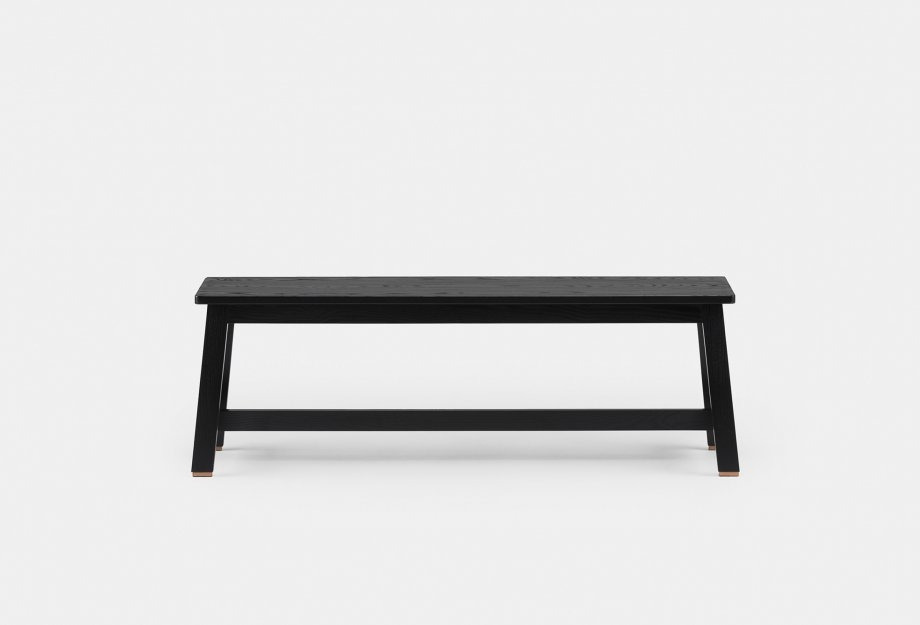 Available in American black walnut, American white oak, or European Ash in a range of finishes. Copper feet. Optional upholstered pad available separately. NOTE: Two holes spaced lengthwise across the centre of the seat allow a seat pad to be secured. The bench can be ordered with or without these holes.