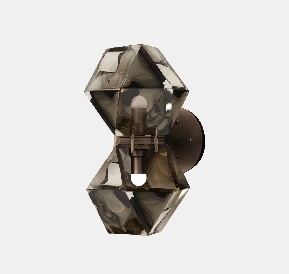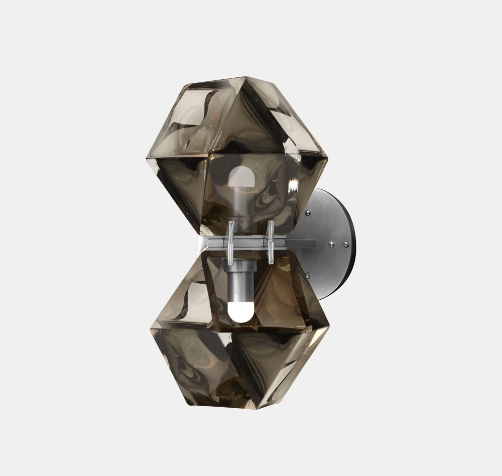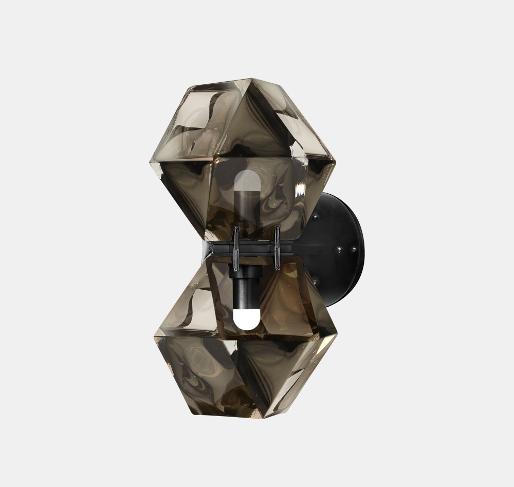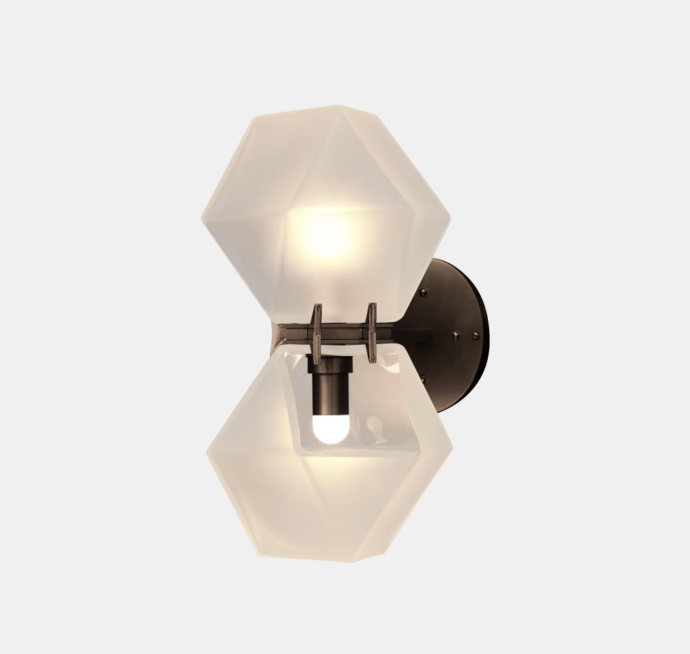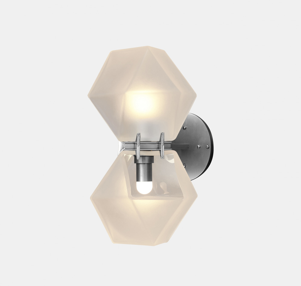A fixture inspired by jewellery, the Welles Glass Double Wall Sconce is the brand’s signature piece reinterpreted. The Welles Glass collection balances a geometric and multifaceted shape with a soft, frosted glass encased in satin metallic prongs.