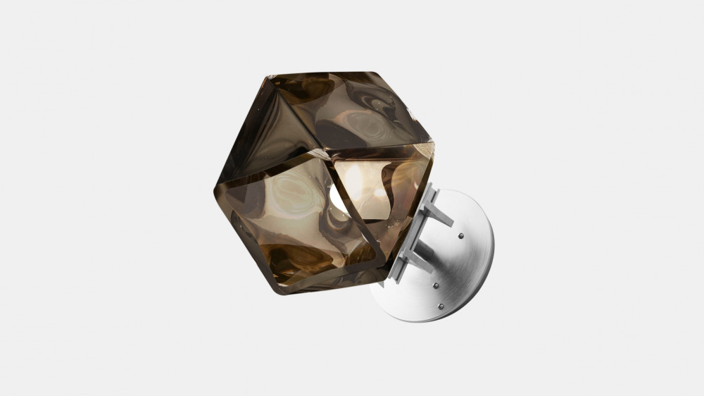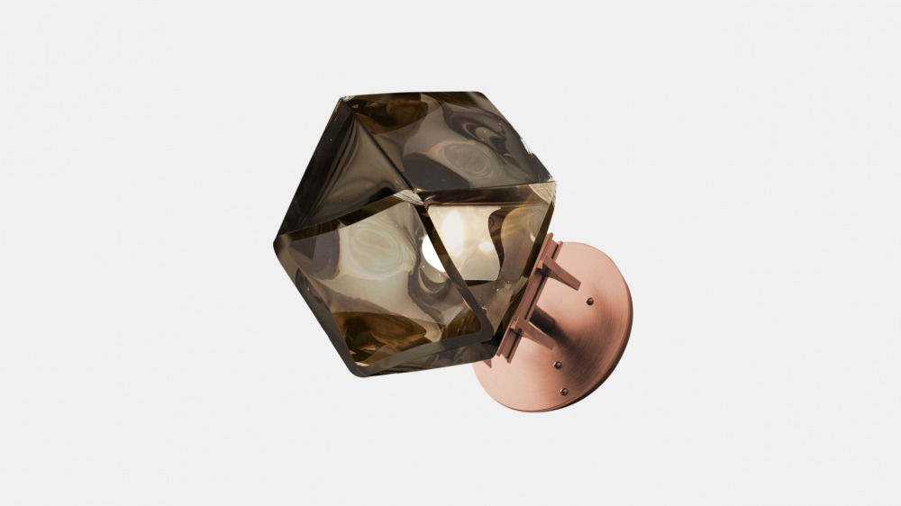 A fixture inspired by jewellery, the Welles Glass Single Wall Sconce is the brand’s signature Welles Steel piece reinterpreted. The Welles Glass module is available in alabaster white or smoked gray, with the metal plate available in satin brass, copper, nickel, bronze or black steel.
