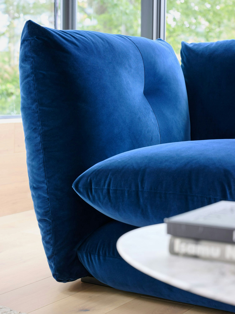 With deep seats designed to be sat in, not on, this comforting refuge beckons you to jump in and relax. Like magic, it’s a viscerally all-encompassing experience that makes you forget the piece and just enjoy being in it.