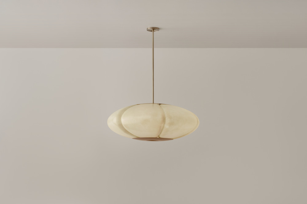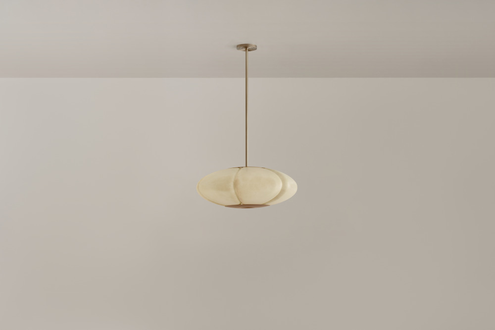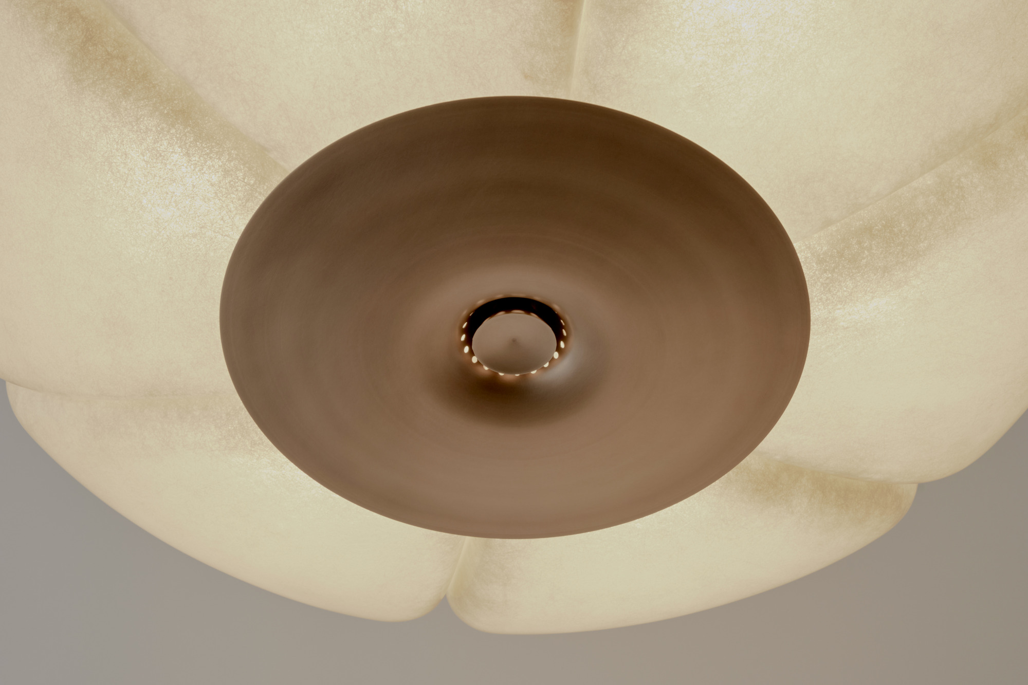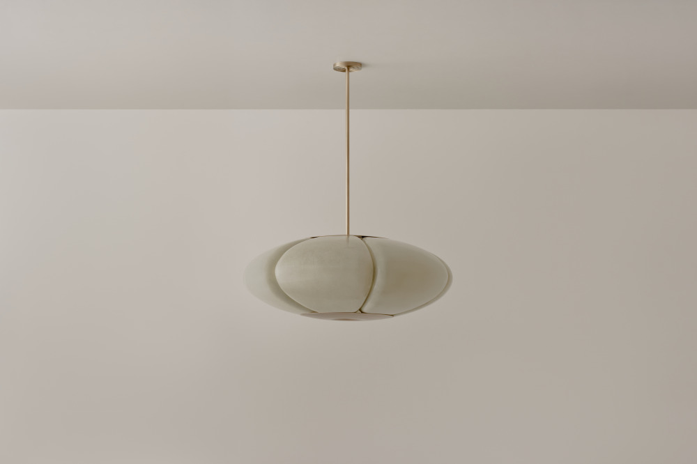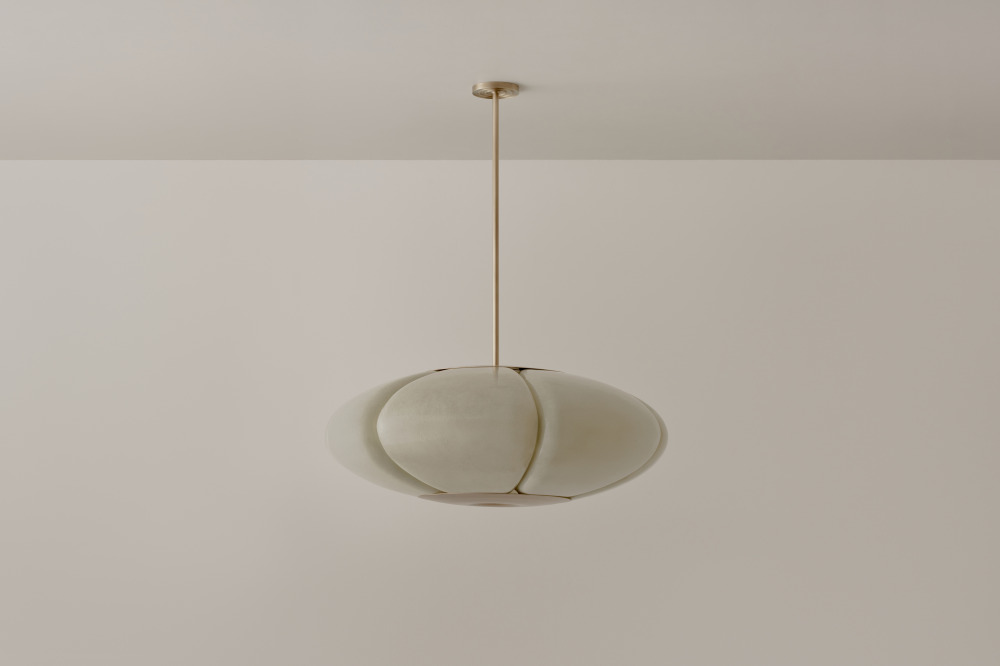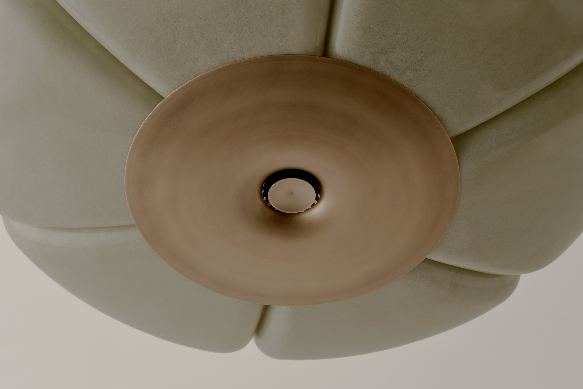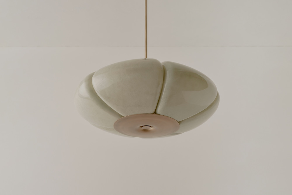 The result of a minor calamity, a fixed constraint, creative simpatico and a long history of friendship, Me and You is a collection of lighting objects by Melbourne based Volker Haug Studio and design practice Flack Studio. As the name suggests, Me and You speaks to the collaboration process, but also to the inherent interplay between light and space. Fleur's richly textured fibreglass segments are held together by two spun brass plates, forming an airy and captivating whole.