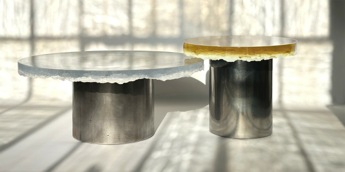 Known for their cast resin work and commissioned installations, their collection includes furniture, accessories, objects and art.