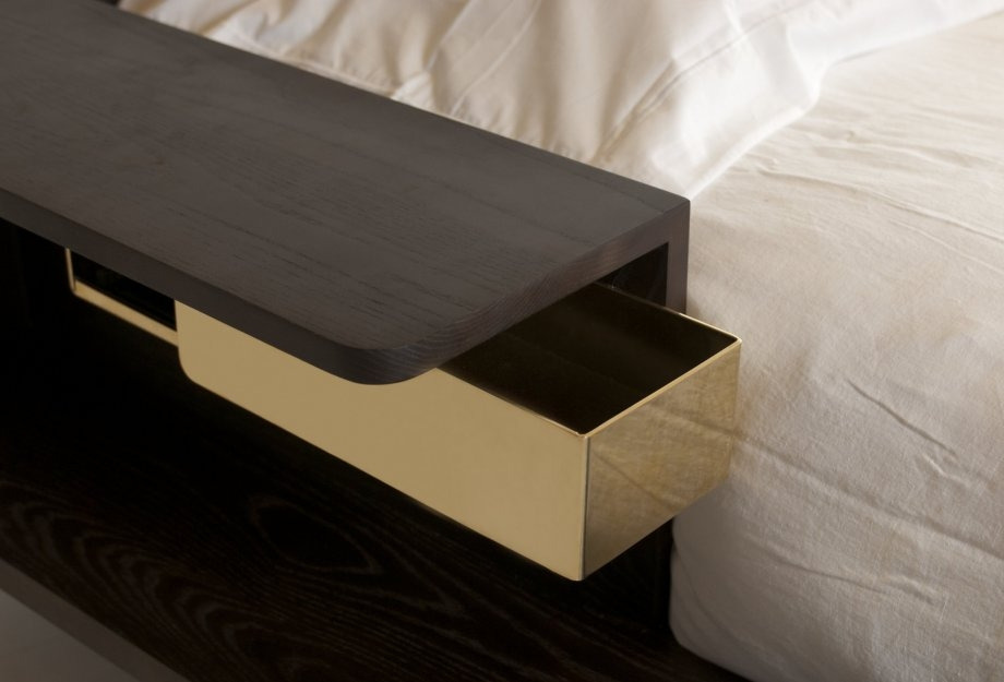 Designed by neri&hu and manufactured by De La Espada for the neri&hu brand. Inspired by Opium beds which have been in China since the Tang Dynasty, Platform is perfect for lazy Sunday mornings with its generous solid wood frame offering space for cups of tea and books. Storage compartments include a solid brass drawer and a timber compartment beneath a fold out mirror.
