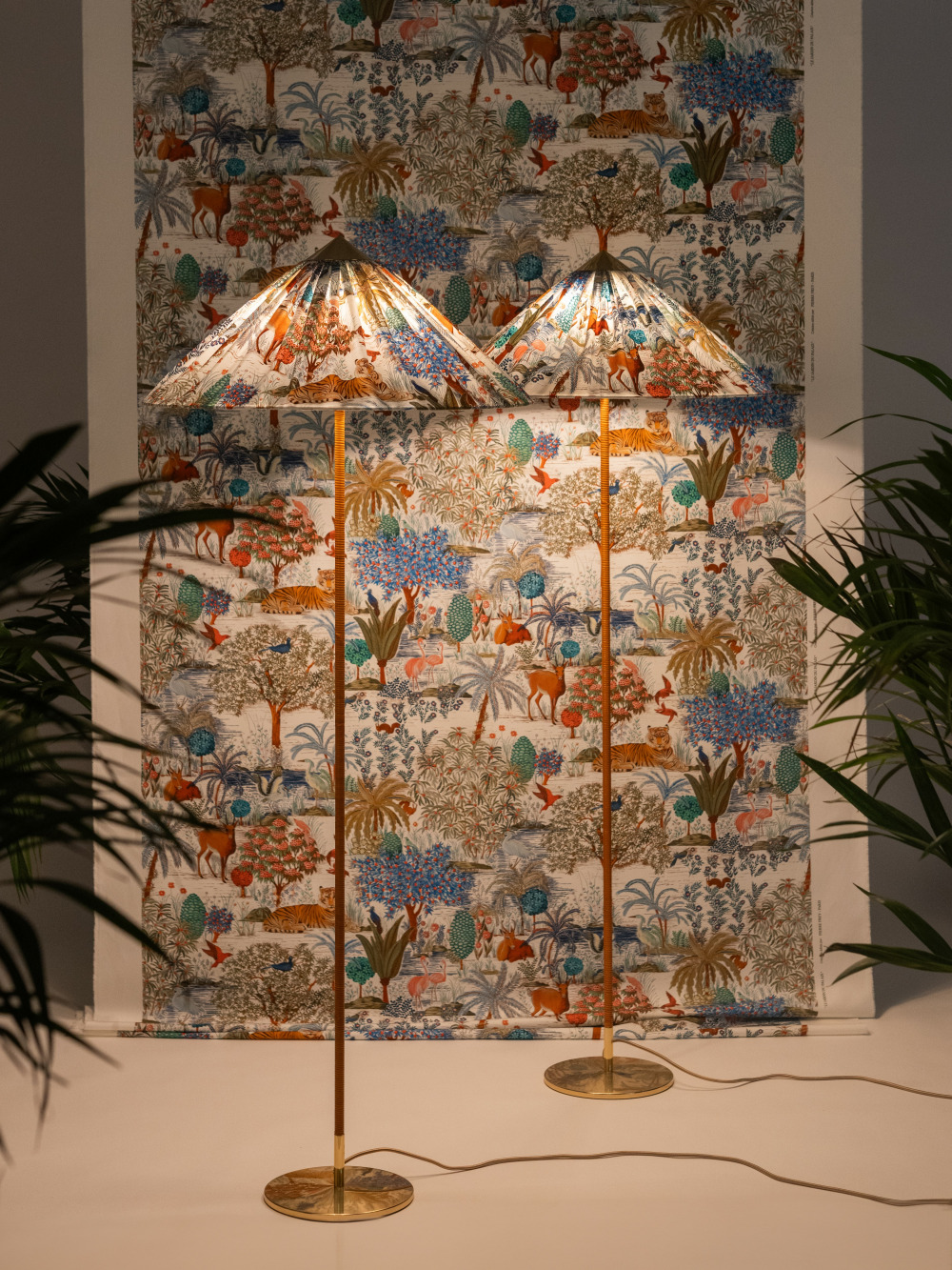 The 9602 Floor Lamp, also known as “Chinese Hat” was designed by Paavo Tynell in 1935 for the Hotel Aulanko. Characterised by its elegant and airy lampshade and rattan-covered stem, the 9602 Floor Lamp shows the designer’s limitless imagination and unparalleled ability to create designs of enduring beauty. Adding a playful, exuberant quality to the top, balanced by the more static form of the base, the 9602 Floor Lamp is perfectly suited for creating a gentle ambient light in the domestic living room.
