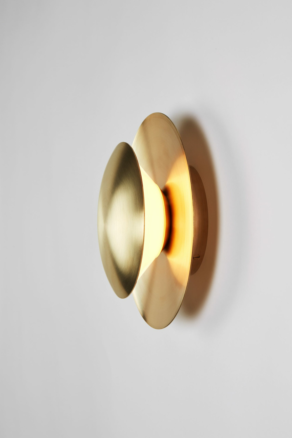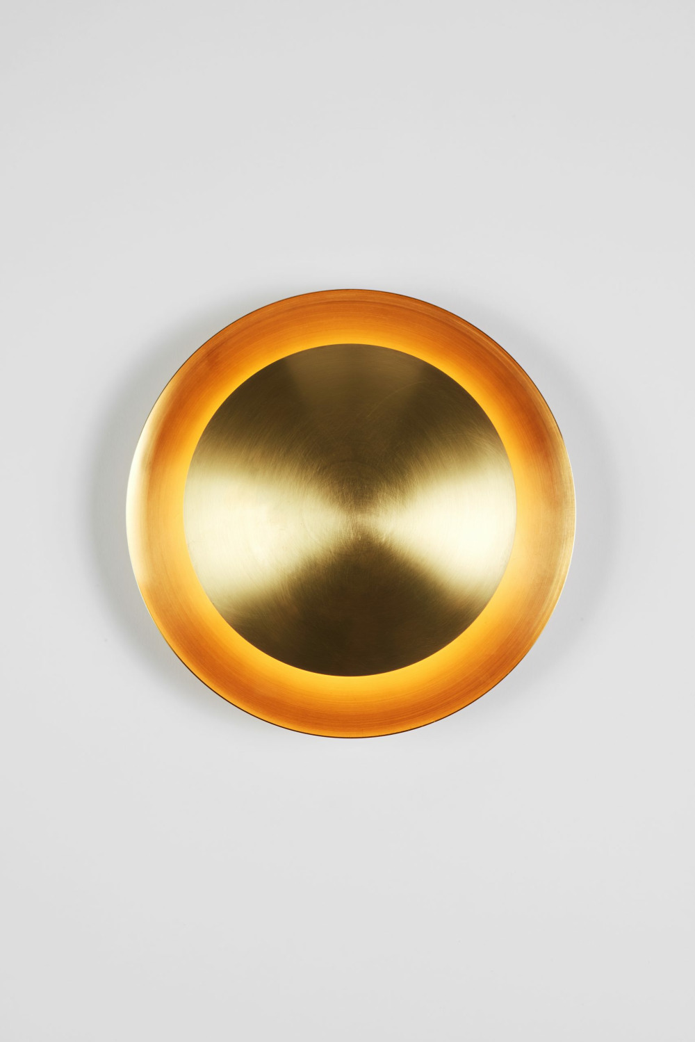 Unlacquered brass (This finish will patina and darken over time, the patina process will begin at time of fabrication. Polishing will restore the sheen if desired.)