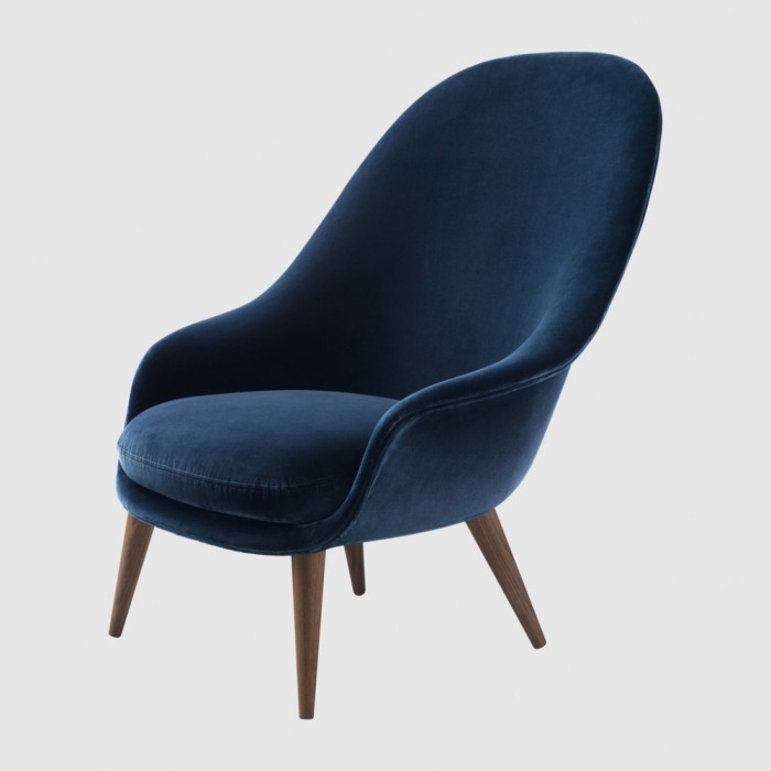 Bat Lounge Chair - Fully Upholstered, High back, Wood base