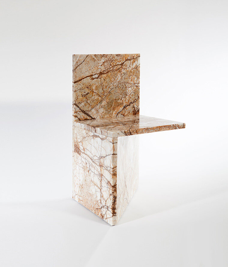 An unexpected shift in appearance is the central idea behind the design of this chair. It switches from precariously balanced to solid and permanent through the clever use of a triangular base which creates the illusion that the chair is missing one leg. Also available in limited editions of stainless steel and brass every chair is assembled and finished by hand combining an in-depth knowledge of traditional techniques of craftsmanship and artistry with a desire to push the boundaries of what is possible in contemporary design and fabrication