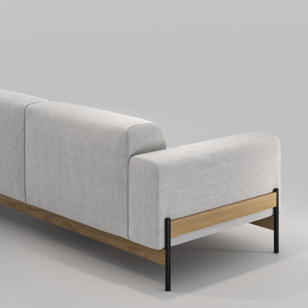 The Bowie collection seamlessly blends contemporary design with lasting comfort, offering a striking balance between lightweight metal and the enduring strength of solid wood. The clean lines and minimalistic silhouette are enhanced by a simple yet captivating detail, the junction where the metal frame meets the wood, creating a refined contrast that adds visual interest without overpowering the overall design.