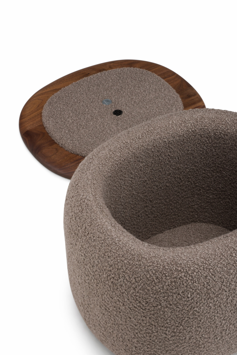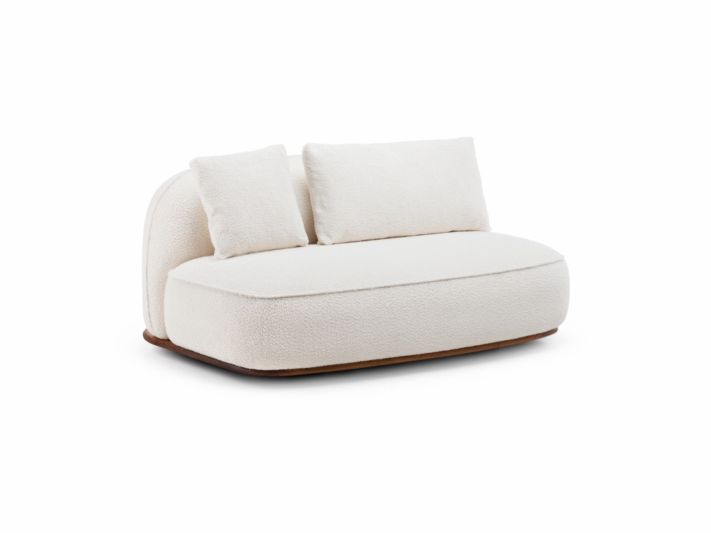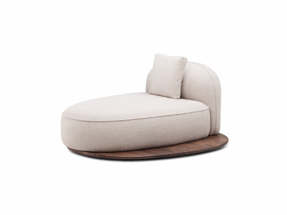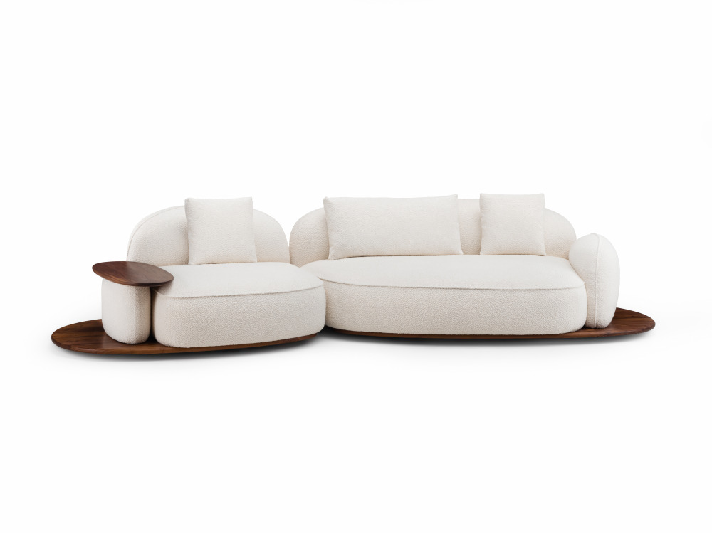 The Azores collection comprises sofas and small tables, conceived as islands, allowing for flexible compositions to suit unique spaces. Each piece has a soft, rounded, sculptural shape made from luxurious upholstery and rich solid wood, highlighting the craft of De La Espada. Designed by Luca Nichetto.