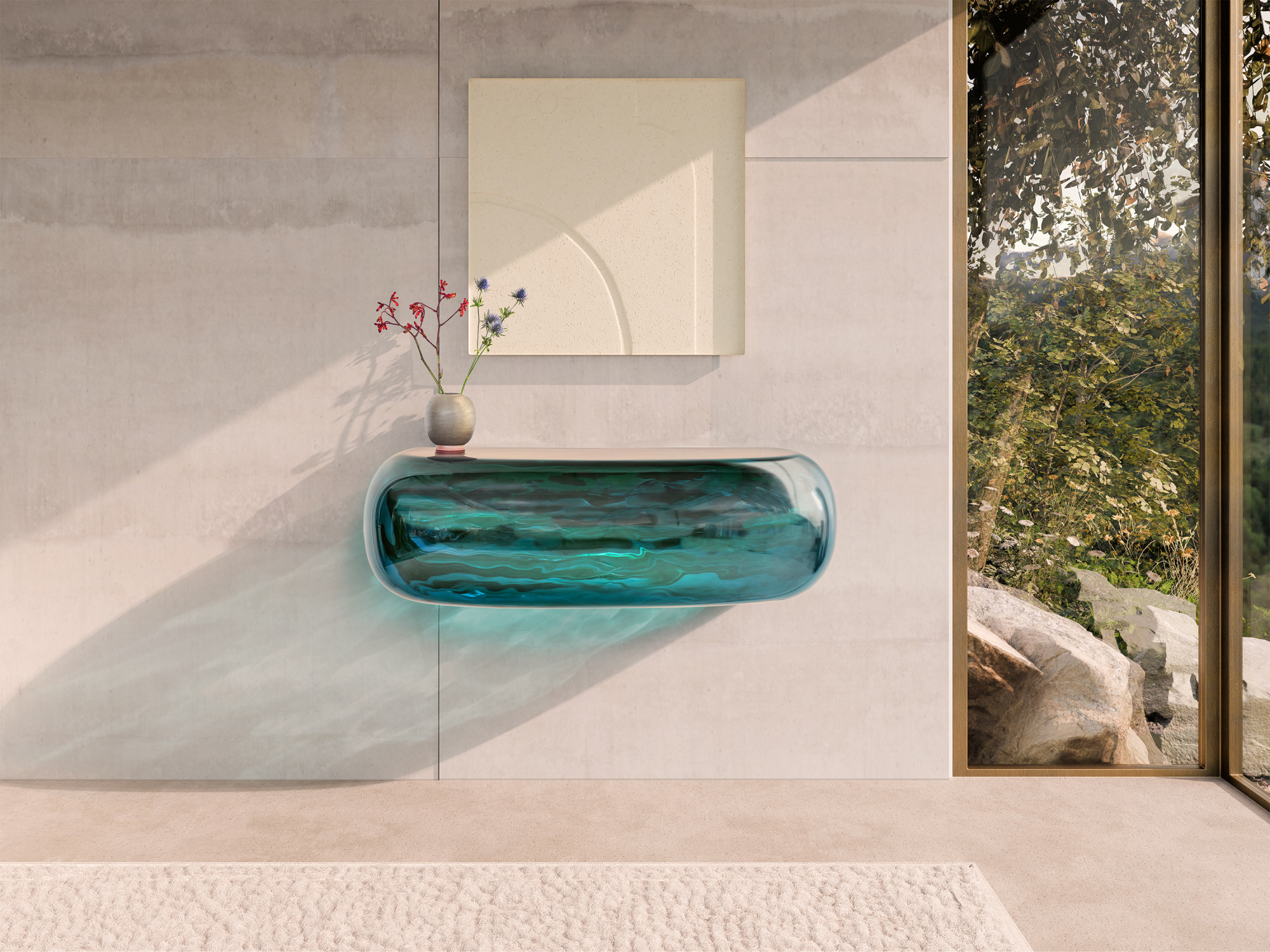 The POP CONSOLE appears to defy gravity, inspiring a sense of wonder. Despite its delicate, featherlight look, it is expertly engineered from rigid resin for lasting strength. Available in countless colours, this floating console blends art with function. Like an airborne balloon clinging to the wall, it adds whimsy and intrigue to any space – perfect for making a statement.