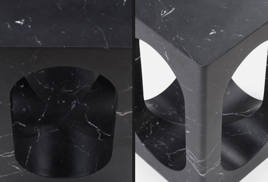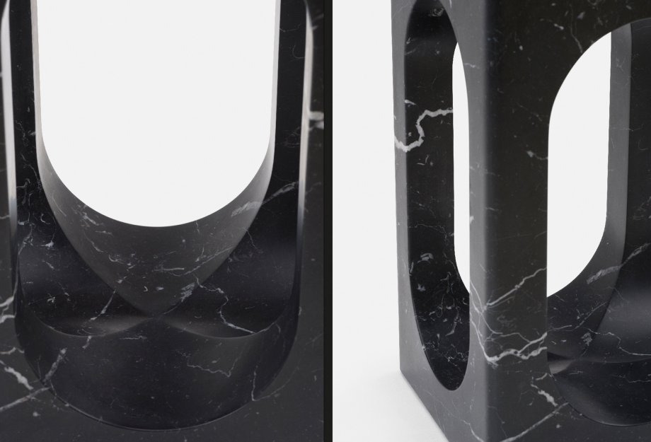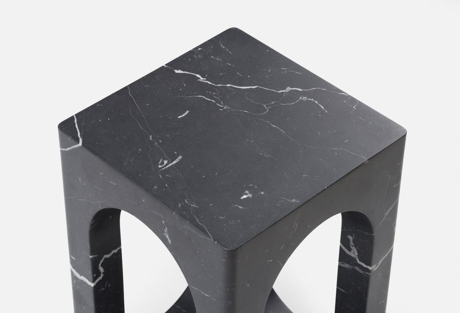 Carlo is a sculptural side table with a classical material and form. Carved from a single block of marble, the table has an architectural quality with its vaulted roof and floor that embraces the beauty and strength of the material.